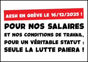 - AESH en grève le 16 décembre 2025 ! Pour nos salaires et nos conditions de travail, pour un véritable statut : seule la lutte paiera !La CNT-SO soutient l’appel à la grève initié par les autres organisations syndicales pour le mardi 16 décembre. Arrachons, par la lutte un statut, une augmentation des salaires, de meilleures conditions de travail et le respect des élèves et de leurs familles ! Le mépris des personnels et des élèves ça suffit ! De trop nombreux·euses collègues interviennent sur plusieurs… Lire la suite : AESH en grève le 16 décembre 2025 ! Pour nos salaires et nos conditions de travail, pour un véritable statut : seule la lutte paiera !