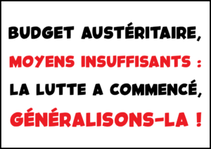 - De la maternelle à l’université : tous·tes ensemble pour faire valser l’austérité !Après 2025, le gouvernement a préparé une deuxième année d’austérité avec un plan d’économie de près de 45 milliards pour 2026 et de multiples annonces contre nos droits. Au même titre que l’ensemble des travailleur·euses, nous serions encore largement impacté·es par ce projet : – augmentation du temps de travail : suppression de deux jours fériés ; – année blanche… Lire la suite : De la maternelle à l’université : tous·tes ensemble pour faire valser l’austérité !